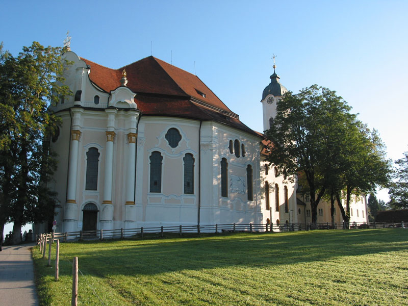 Bavaria – Oberammergau and Wiekirche This restaurant in Oberammergau is a joy for many senses. Businesses as well as homes are adorned with elaborate frescoes. Oberammergau's many Christmas stores feature local wood carrvings. Christkindlmarkt Wieskirche (The Church in the Meadow) is a UNESCO World Heritage site. It was built between 1745 and 1754 in rococo style, and restored 1985-91. The interior was decorated with Wessobrunner-style frescoes and stuccowork. Wieskirche: The Church in the Meadow is located in a real Bavarian meadow.